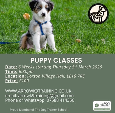 Puppy course for your new furry family friend. We will go through all the puppies basic training requirements, including recall, loose lead walking, focus and much more so your puppy has a great start to joining the family group.